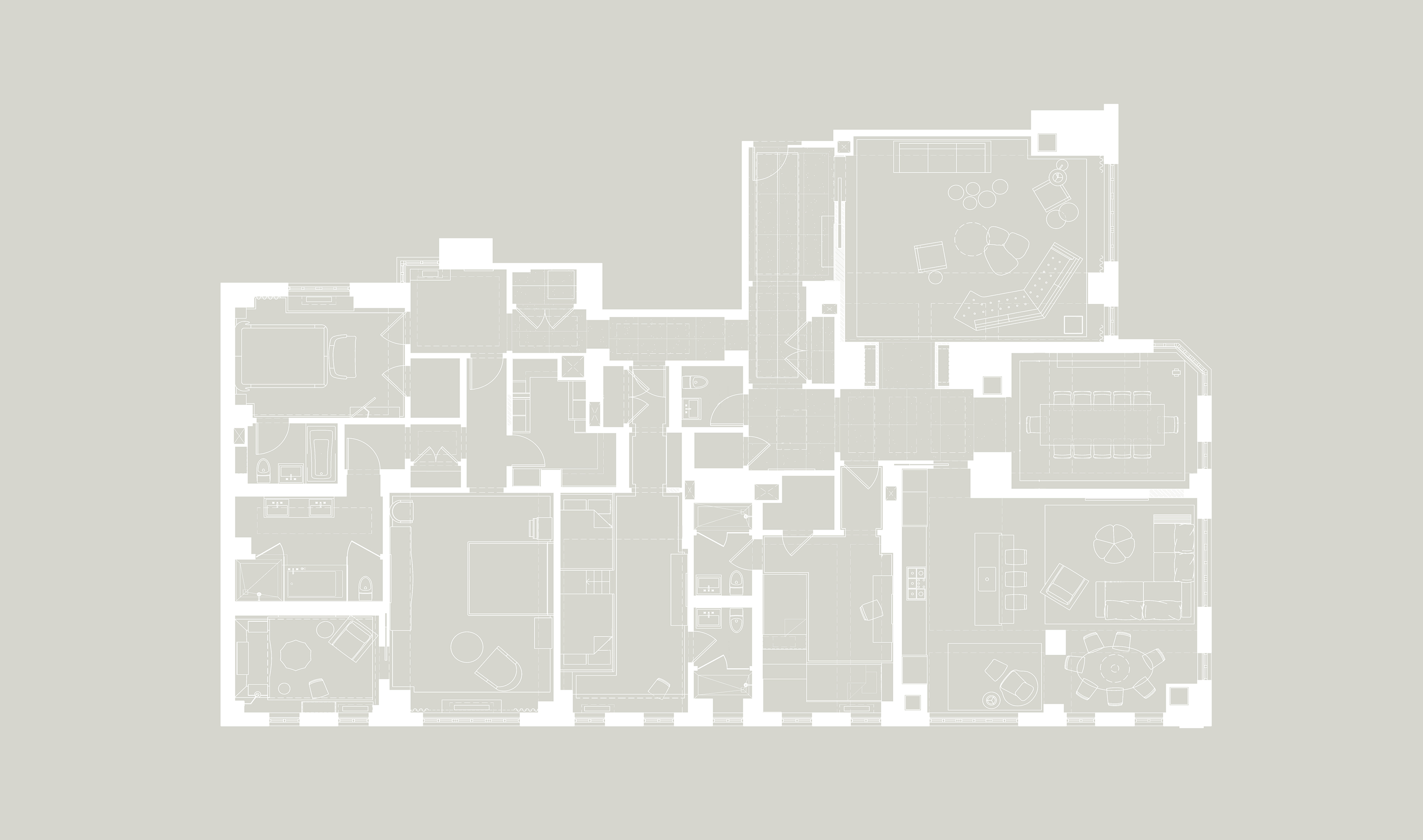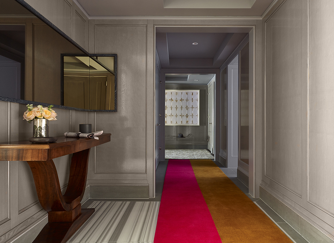 Spanning 4,000 square feet, this Upper East Side apartment is home to a jet-setting international family of seven who sought to create a highly stylized yet comfortable and familiar pied-a-terre.