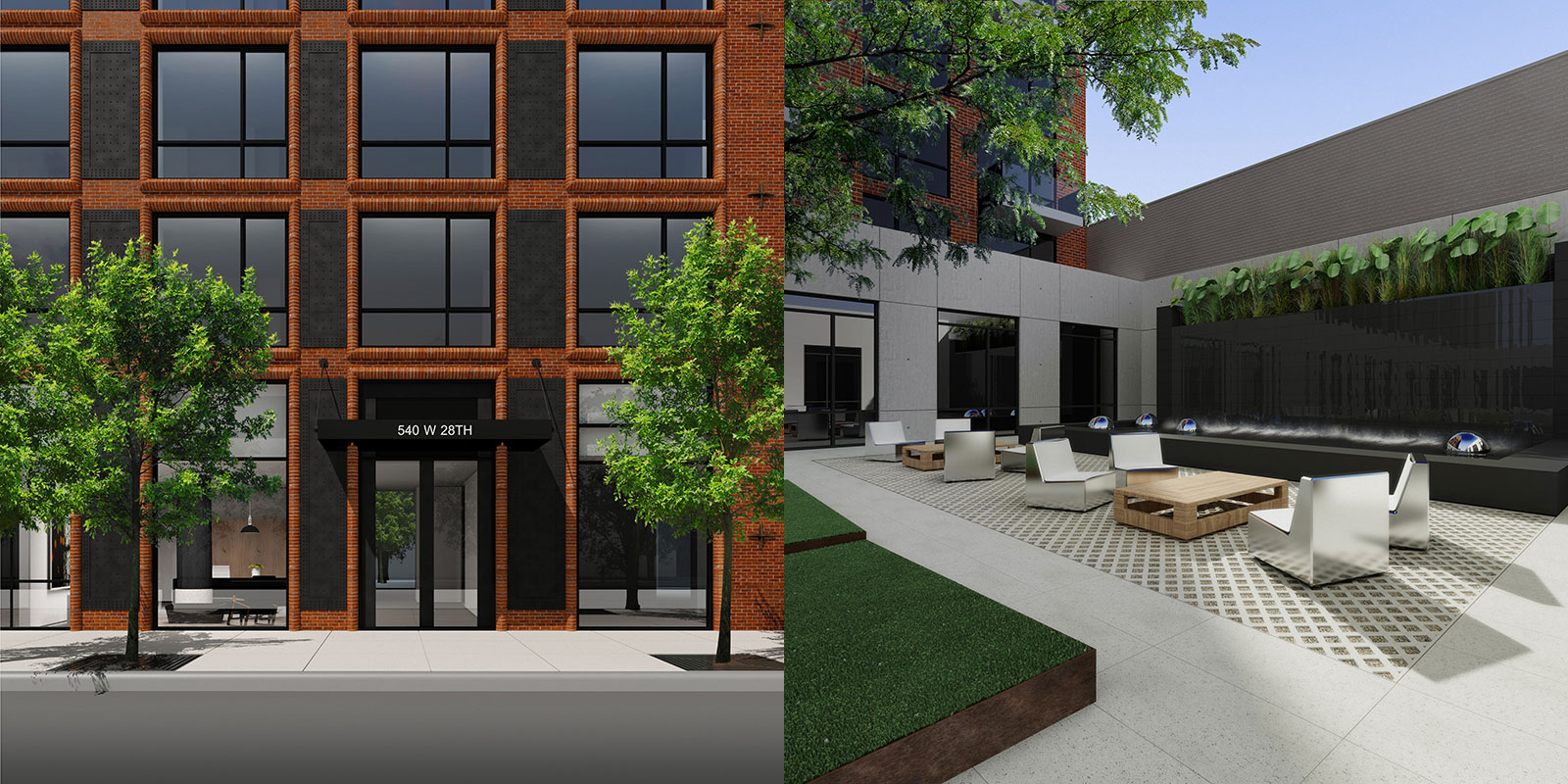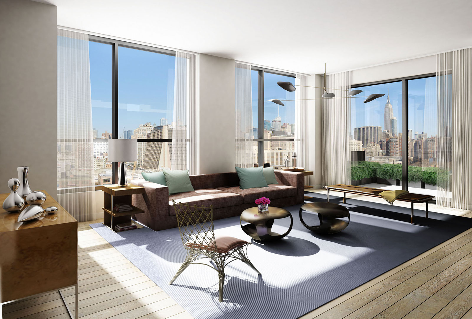 540 West 28th Street | Table and Sofa in Grey Shades and Two Black Chairs
