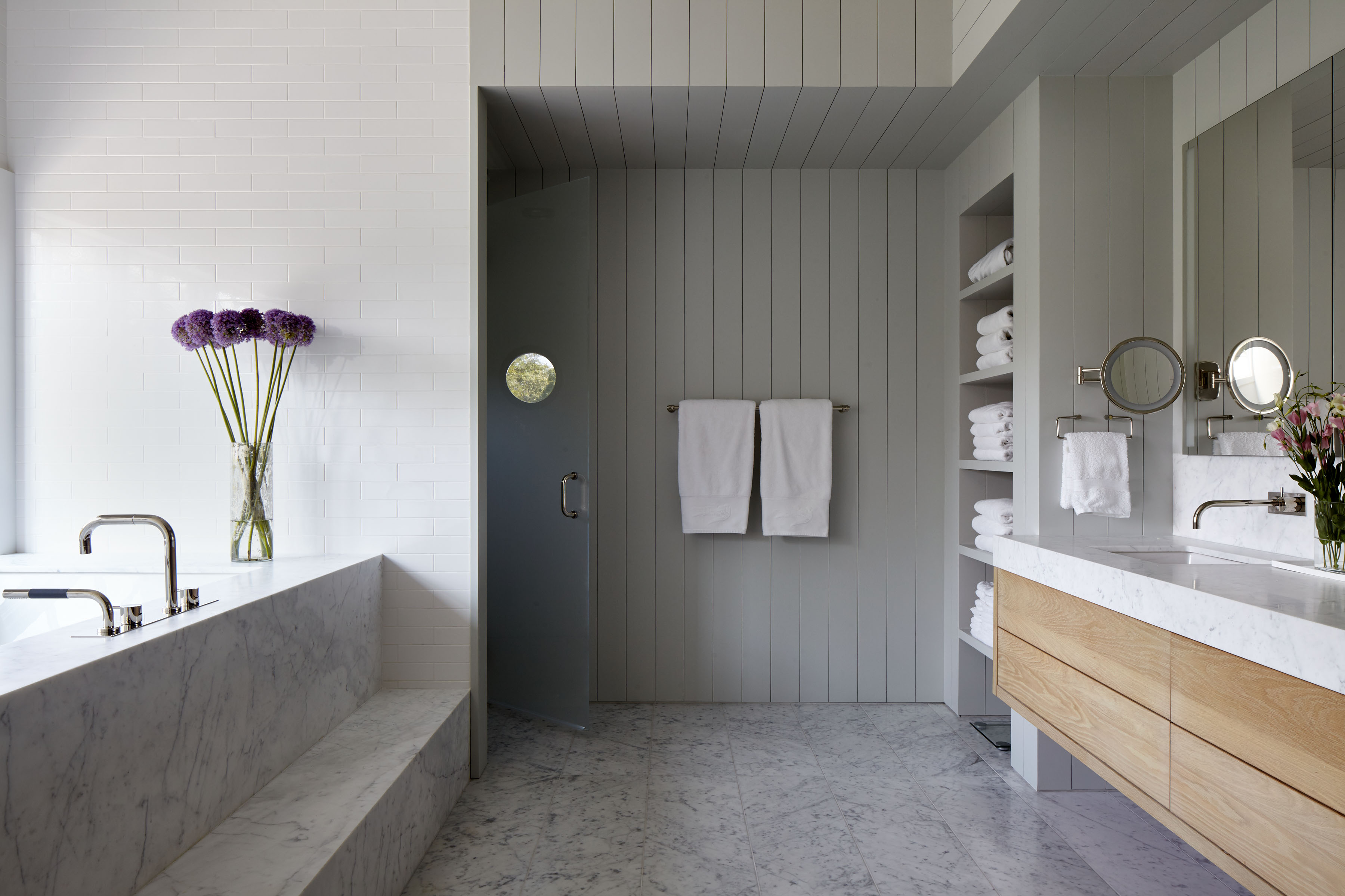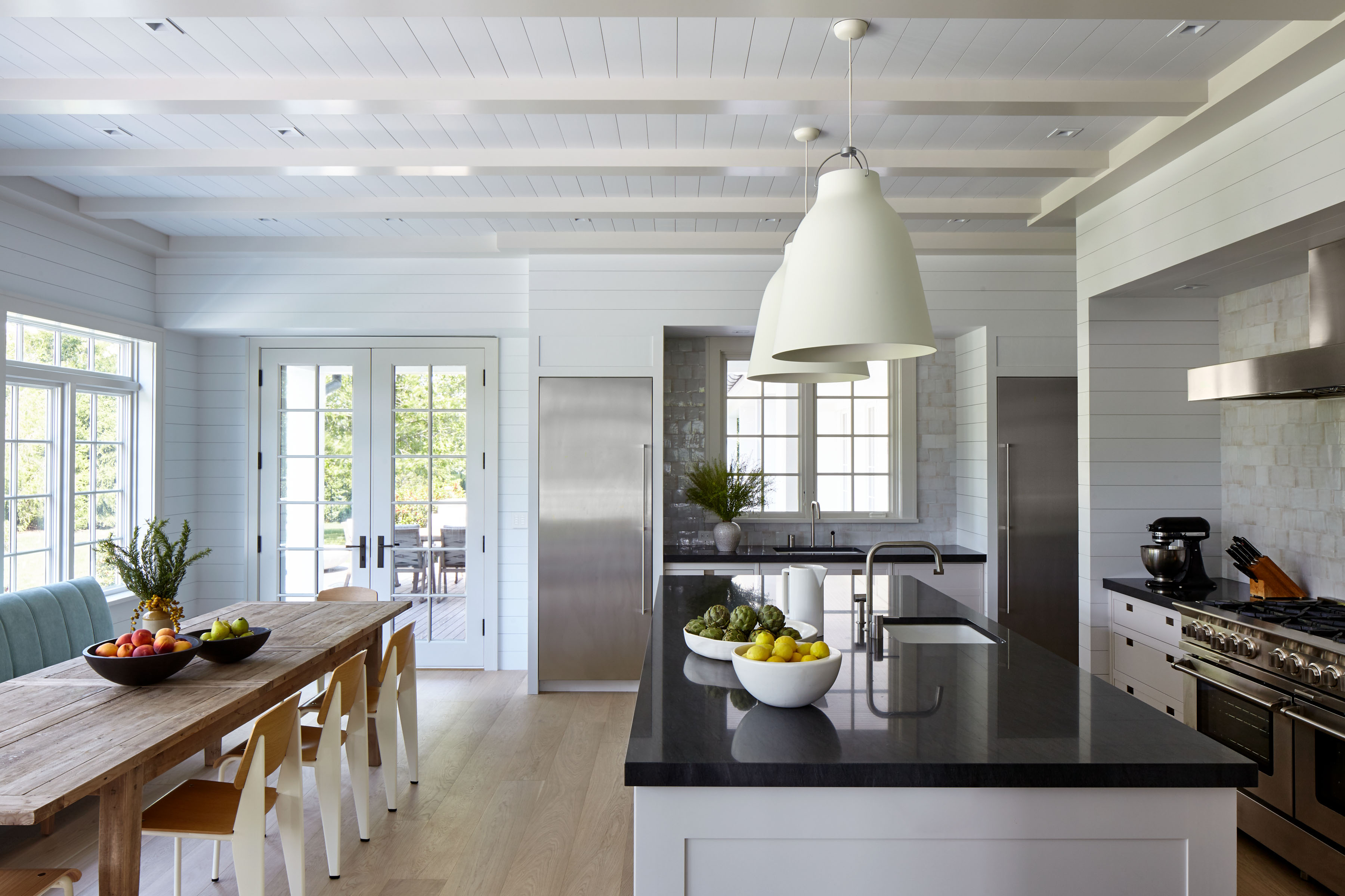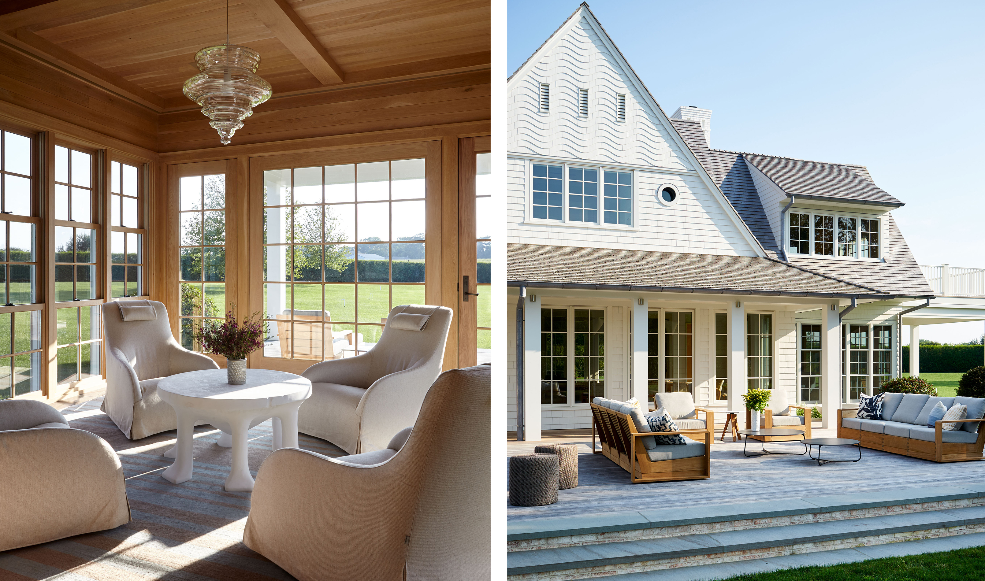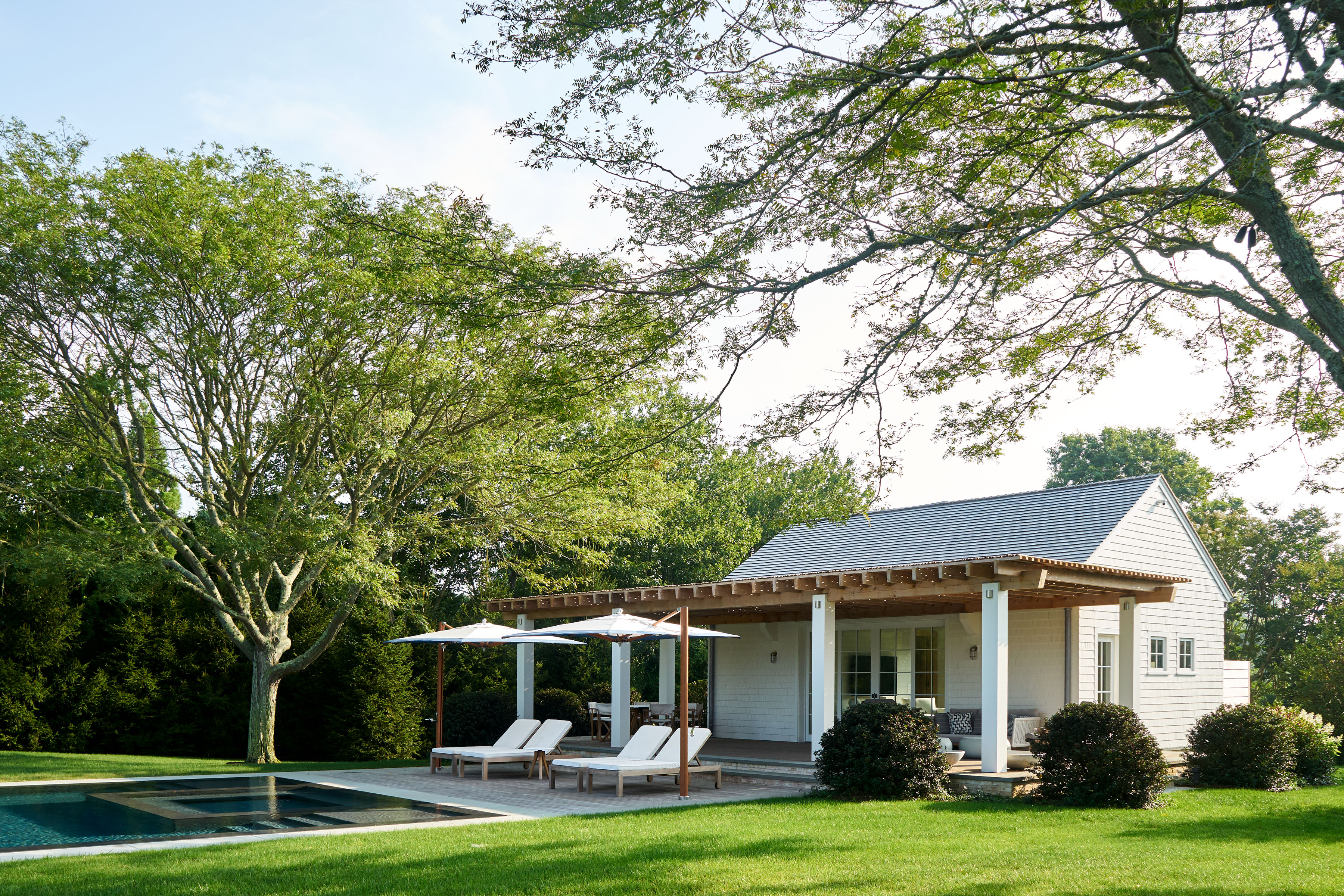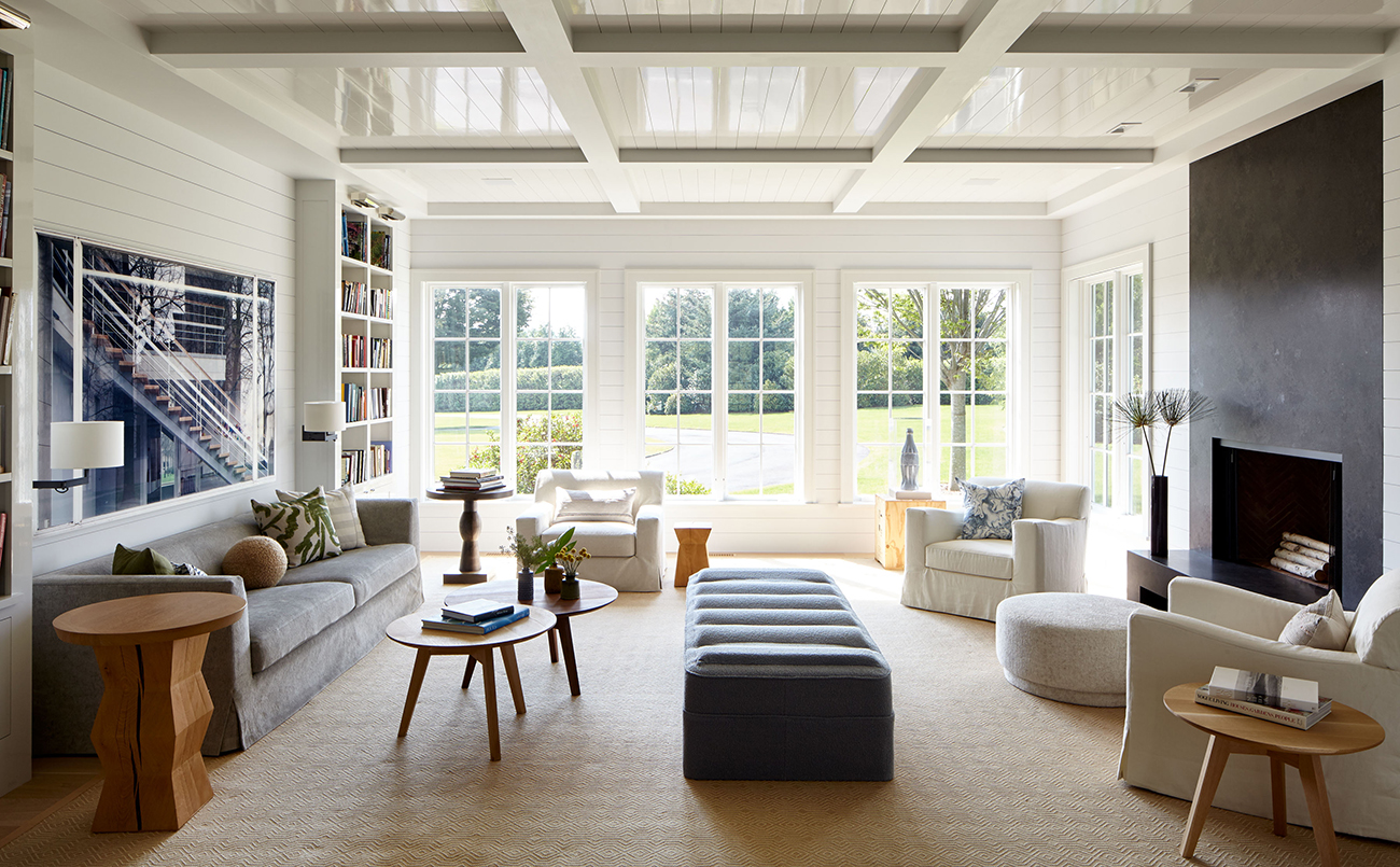 The vast estate, which encompassed a substantial addition to the existing main house and two new structures including a pool house and carriage house, required extensive construction work that eschewed drywall in favor of a more comfortable, rustic look. We also created meticulous millwork and an interior design which plays at the intersection of formal and informal, classic and modern.