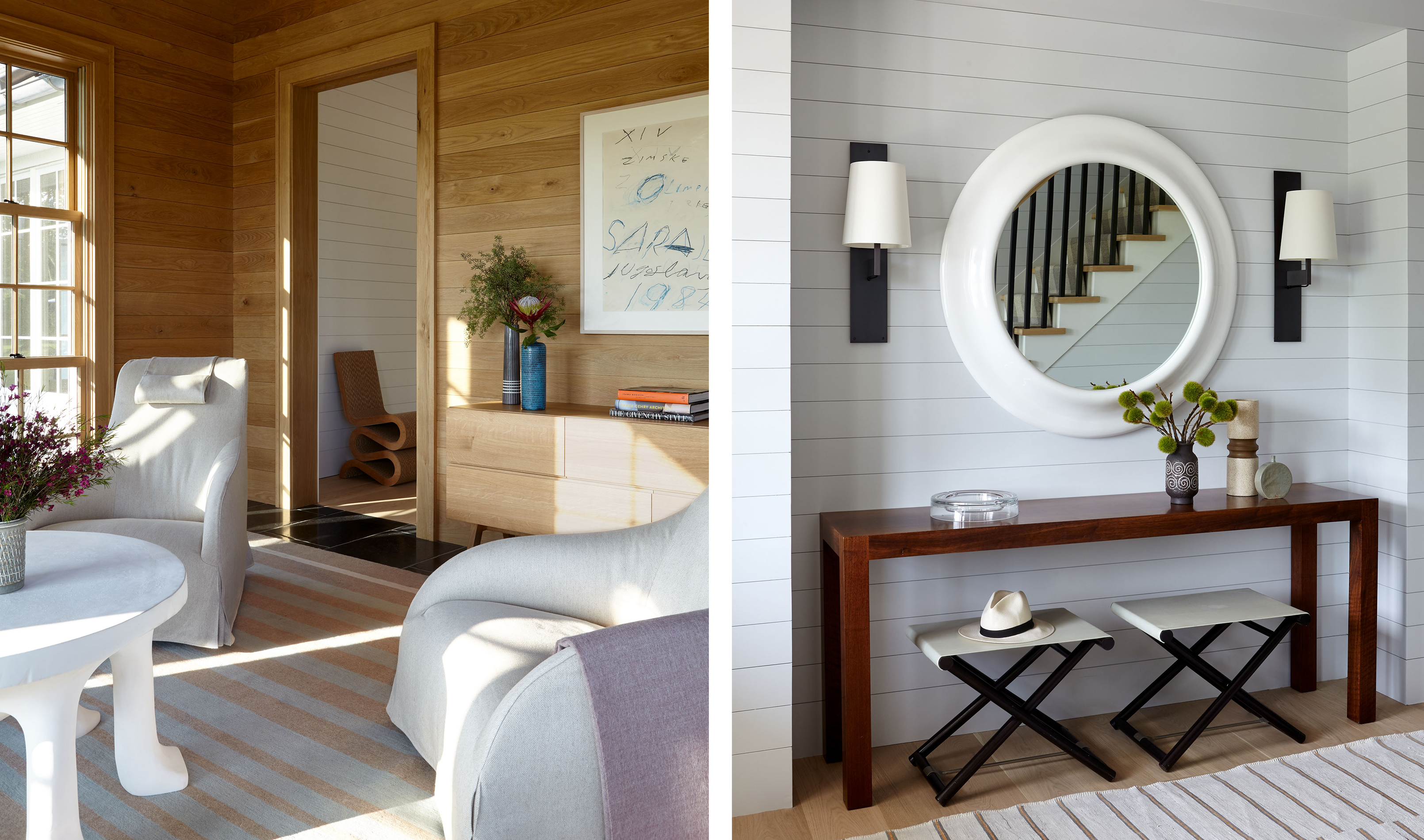 When a long-term repeat client purchased this Hamptons beach house compound, he brought his vast art collection with him. We helped him to rethink the artwork and bring it new energy by installing it in a way that encouraged interaction both with the space, and between the works themselves.