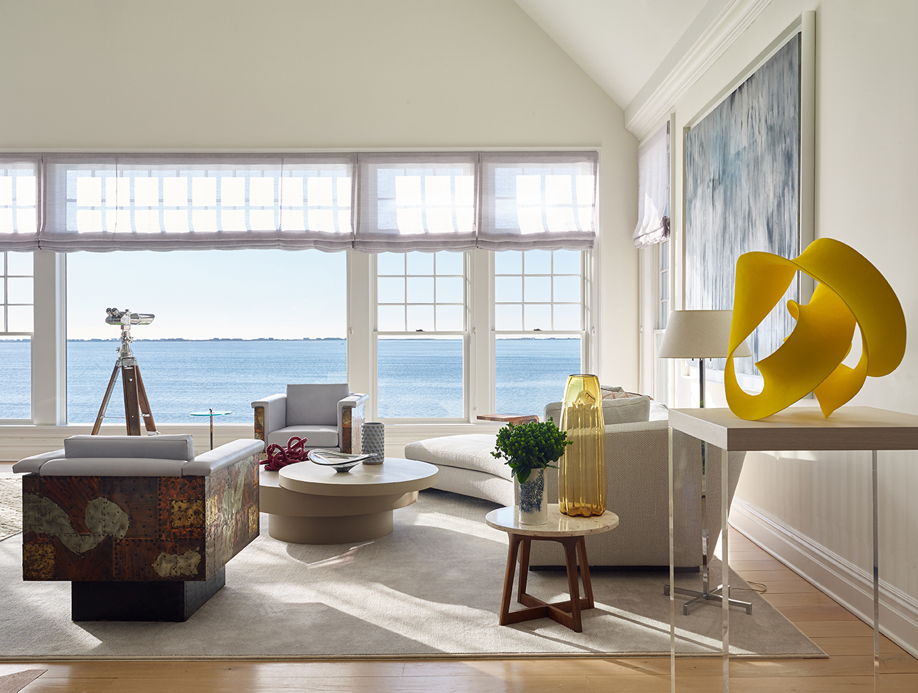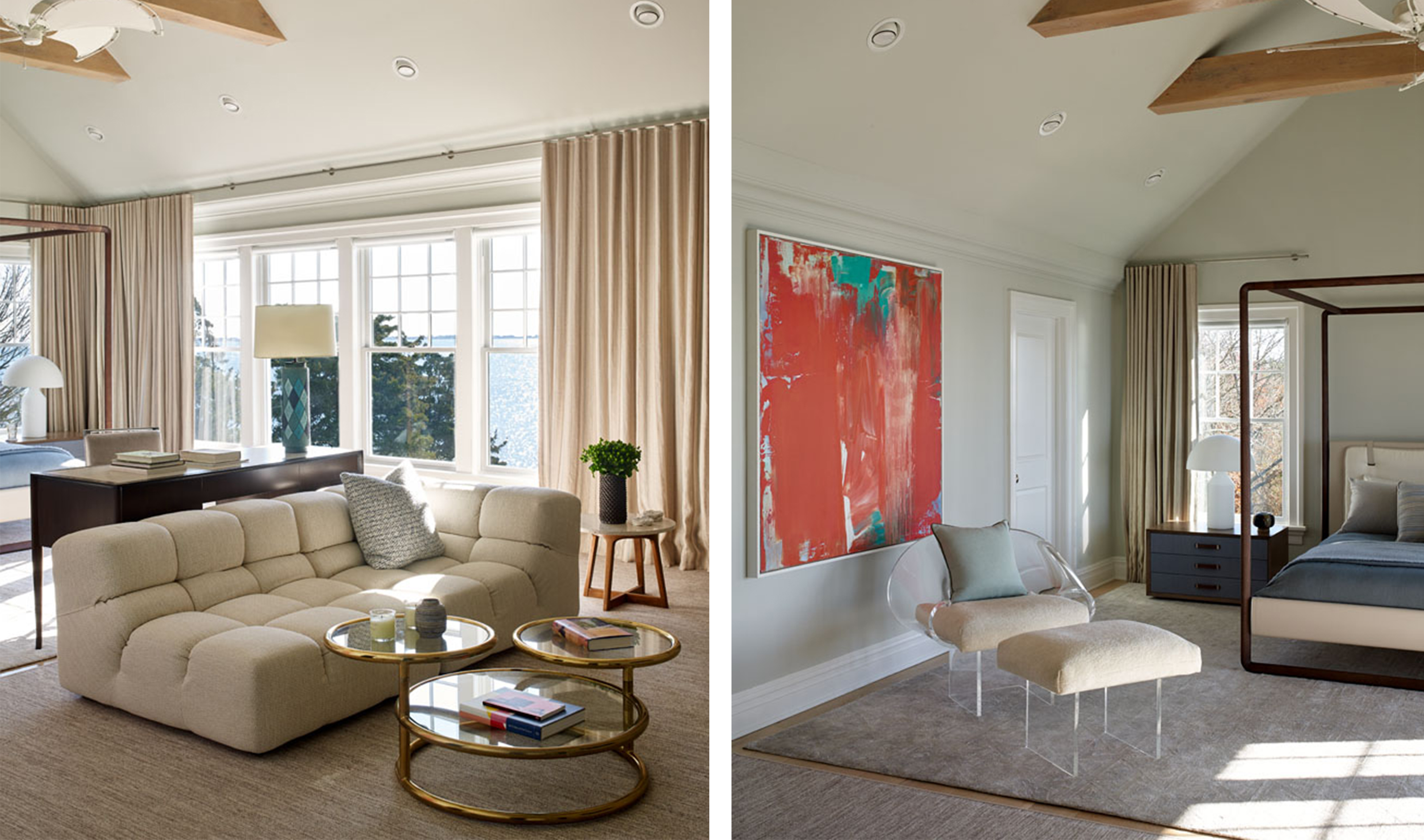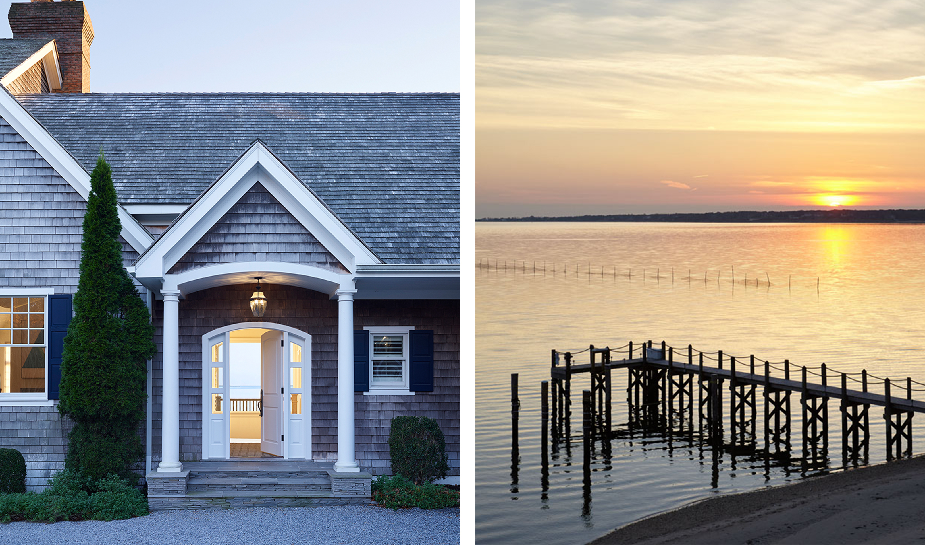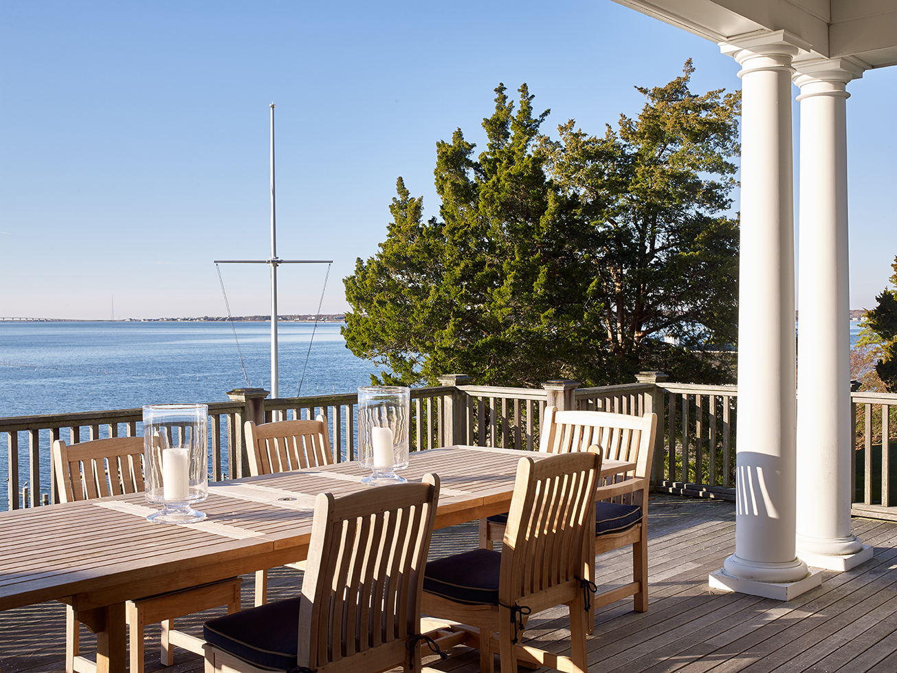 Working to an expedited deadline for a repeat client, we simplified the architectural renovation of the 6,500-square-foot main house in favor of a timely cosmetic design. With expansive views across Shinnecock Bay as our focal point, we streamlined existing moldings and trims, created a soft color palette and installed gauzy window treatments to reflect the expansive estate’s dreamy setting.