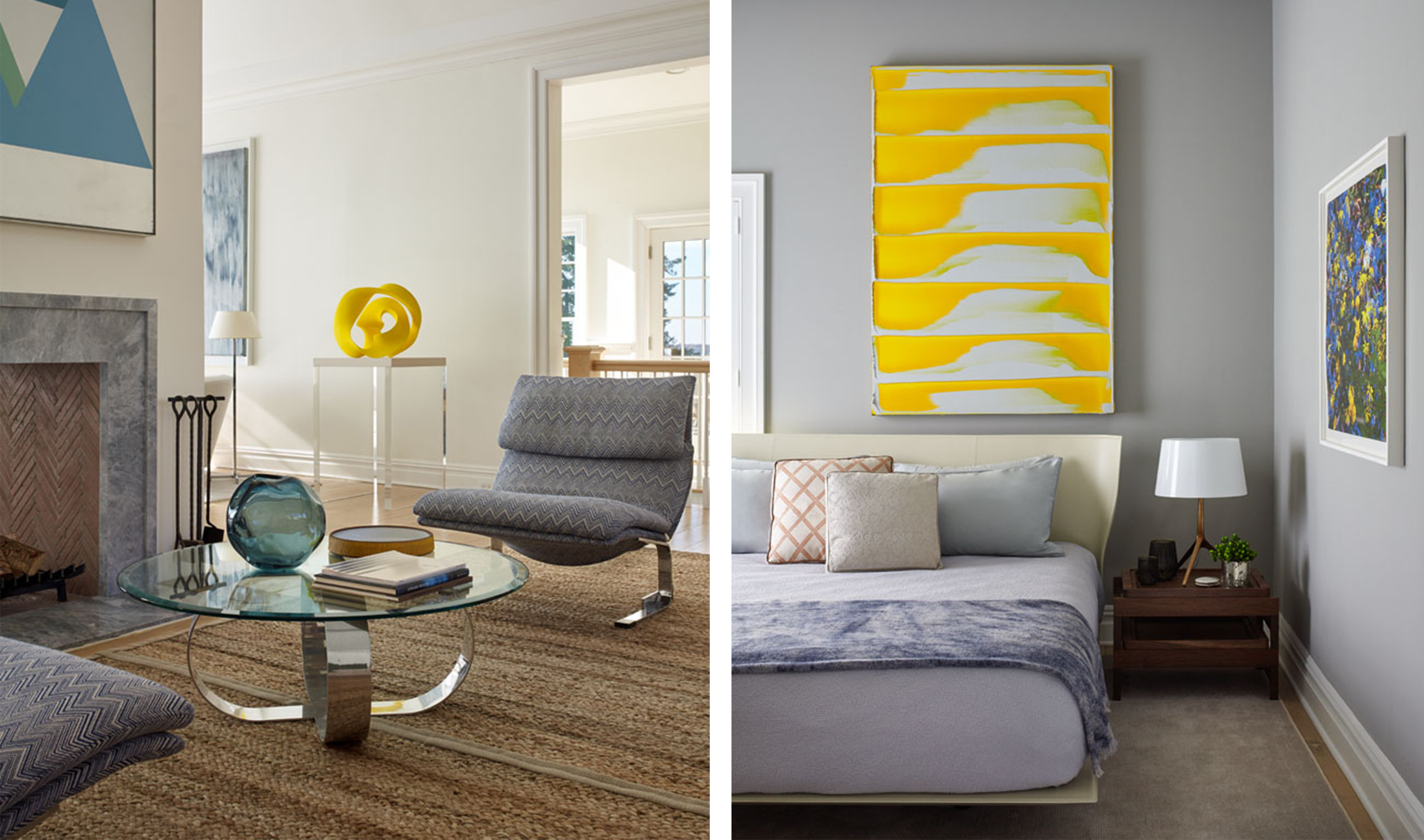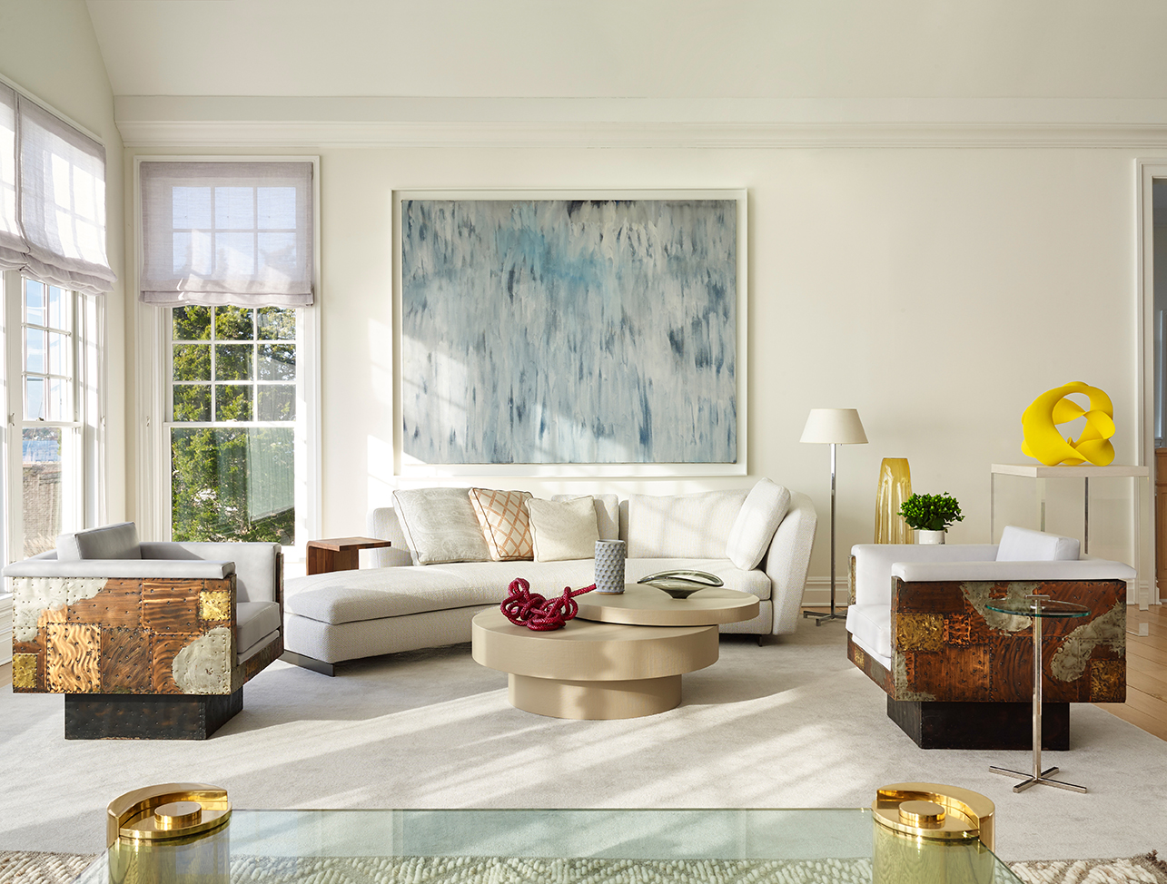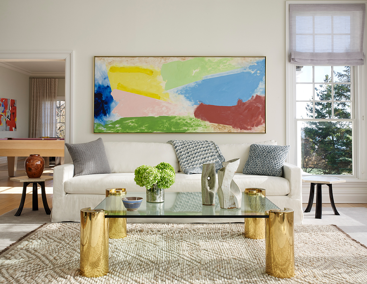 We built the art program for this property around the client’s interest in Abstract Expressionism. In addition to paintings by prominent 20th-century artists including Michael Goldberg, Friedel Dzubas, and Miriam Schapiro, we introduced vibrant, contemporary works by the likes of Matti Braun, the Campana Brothers and Merete Rasmussen to interact with the rest of the space. All together, they bring a layered and modern richness that is unexpected from its Hamptons setting.