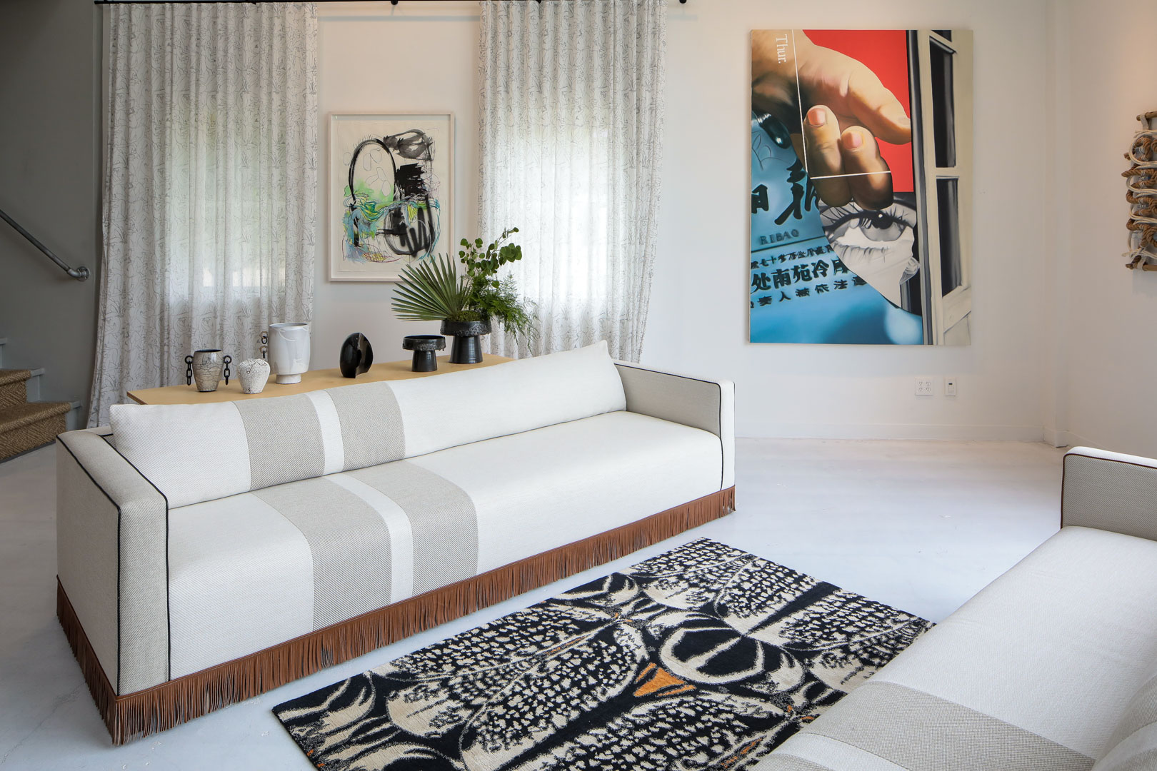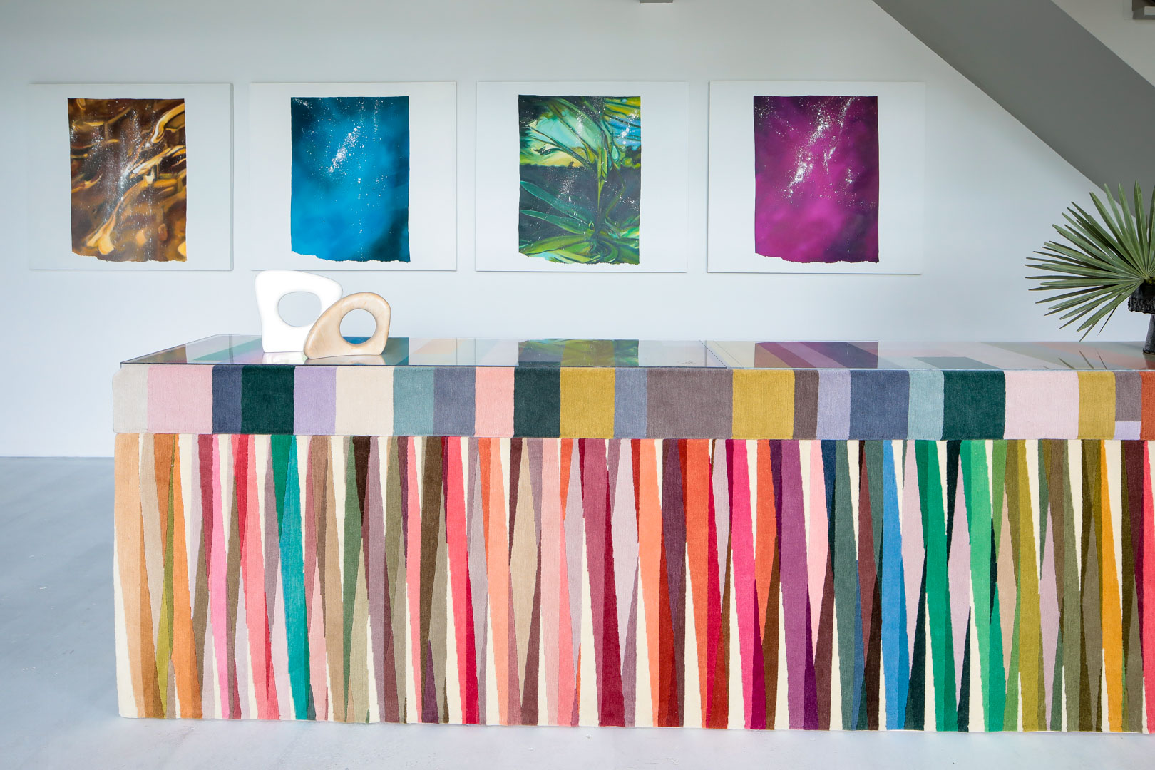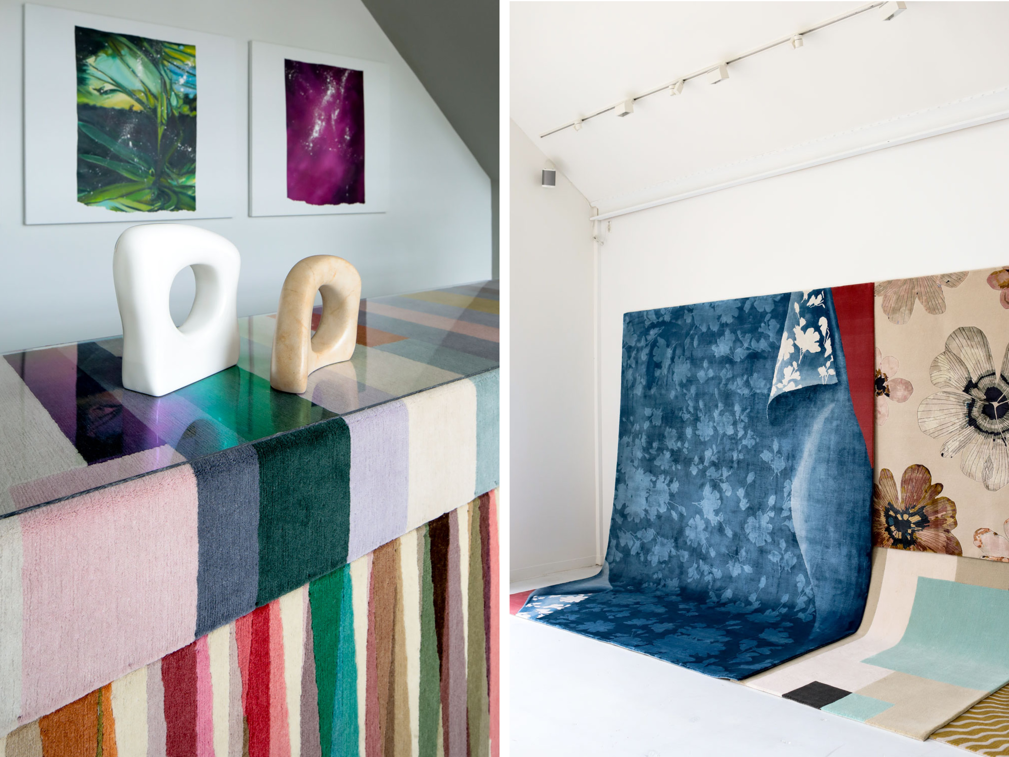 Optic Garden showcases a curated selection of rugs designed by leading creatives for The Rug Company, including “Undercover,” a new bespoke rug designed by Elena Frampton, Principal at Frampton Co, alongside contemporary paintings by Christine Keefe, and ceramics by Kalya O’Donoghue.